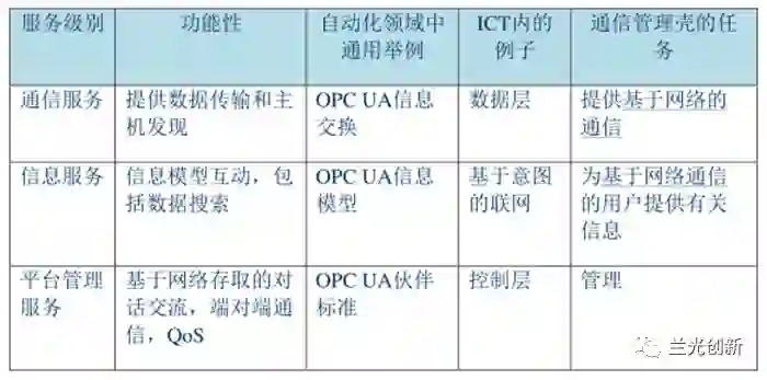 表1 工业4.0服务层级与自动化、ICT和通信管理壳的关系