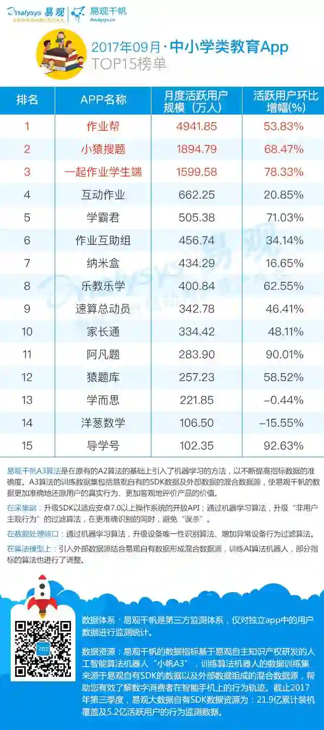 2017最新App TOP1000排行榜 | 教育领域独领风骚 票务市场受票房冲击