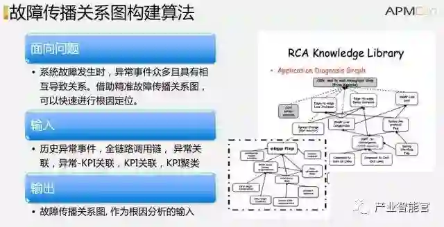 假如说我们有这样的故障传播链,同时又对事件有很好的监测和准确的报警,那根因的分析就简单了。因为只需要顺着故障传播链各个报警找,找到最后一个就是根因。这其中有两个关键的步骤,一个是KPI异常检测,另一个是故障传播链,下面会详细介绍这两部分。