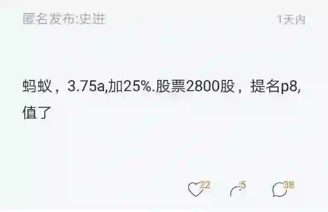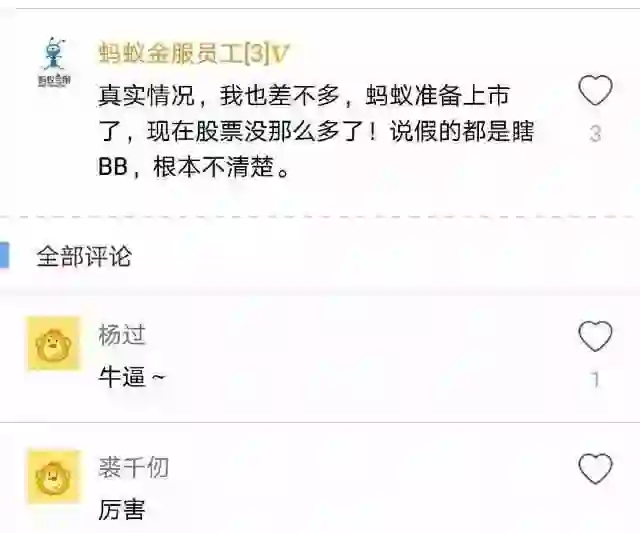而根据另外一名网友的回复,蚂蚁准备上市了,现在股票也没那么多了,说假的都是瞎咋呼,不清楚情况。
