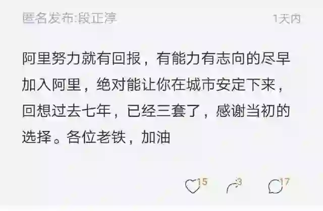 又到了阿里员工一年一度发年终奖的日子,据科技大爆料(大鱼号)爆料有一名在阿里工作七年的老员工在某网络社区发帖感谢公司,称通过在阿里的工作收获了三套房产,自己以后还要努力奋斗,争取获得更多的财富。