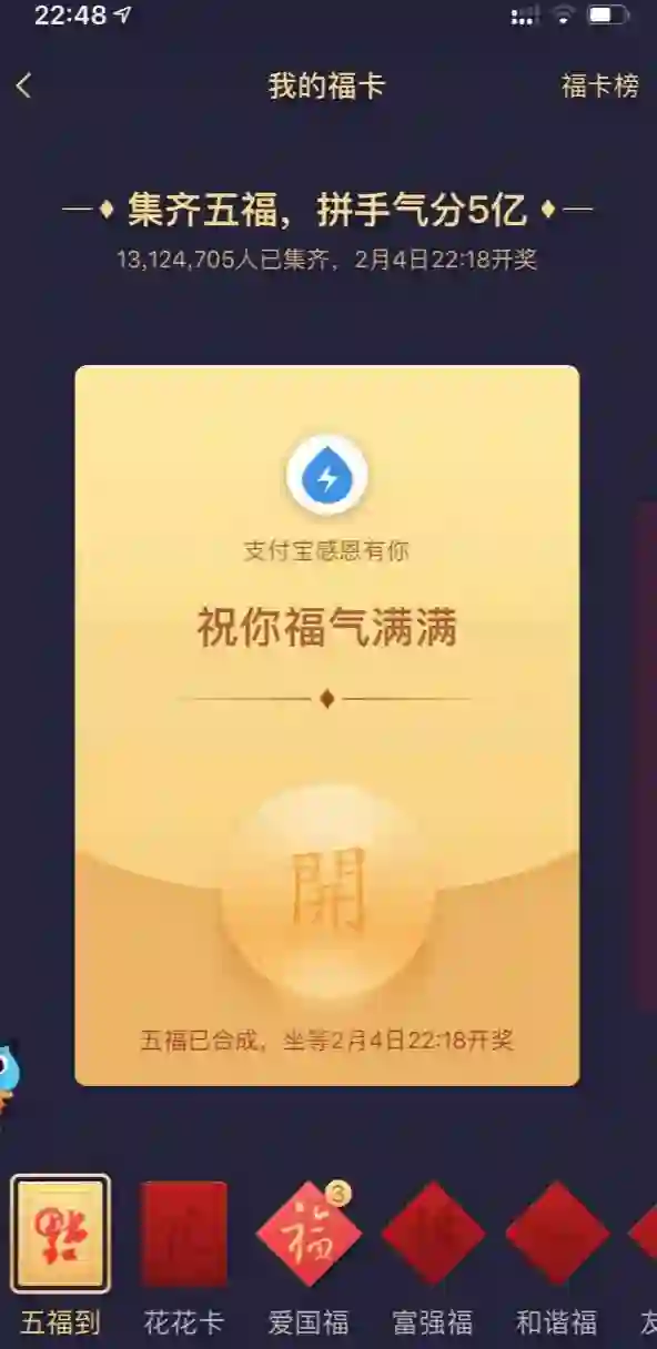 到这个阶段,笔者觉得集五福已经不仅仅是用玩法和利益刺激用户了,而是让用户感知到了“新年祈福”的意味。