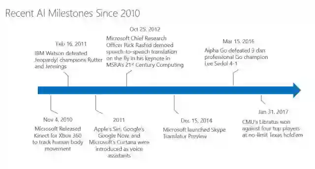 人工智能不是过去两三年才发生的事情,事实上,在1960年就有很多人工智能的发展。首先我想用很短的一个时间轴跟大家一起来看看最近这几年的发展。