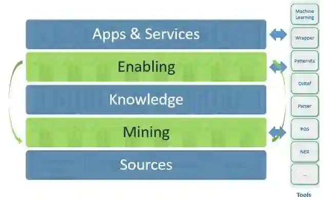 经过来源之后,我们会做挖掘的工作,做处理。然后把获得的内容存在知识库里,然后知识库就能应用到不同的场景中了。