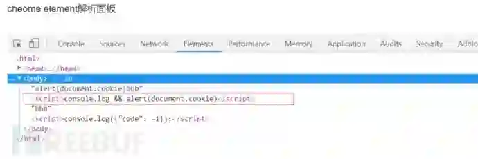 可以看到最后aaa和ccc都是在<script>标签里了,并且aaa换成函数名+括号可以绕过了正则<script>.*\(.*\),将a替换为alert(document.cookie) ,将c替换为任意一个不被wa的变量或内置函数对象名即可console.log