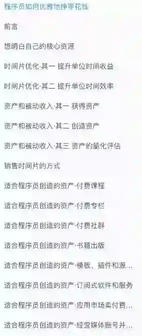 howto-make-more-money 是一个程序员@Easy 现身讲述优雅的挣零花钱的项目,虽然是一个教你如何赚零花钱的项目,但是通过阅读本赚零花钱小书你可理清自己的核心资源,以及如何创造资产。