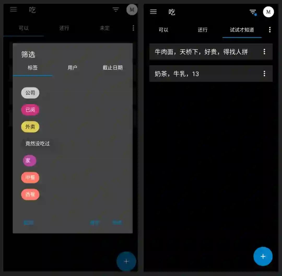 不知不觉,到了午休时间,对于一个吃货而言,午餐吃什么是不能含糊的。我打开了手机上的 Nextcloud Deck 应用,点开了其中的「吃」面板,我在这个面板里面写下了所有想吃的东西,并且给他们打上了地点和价格的标签,我用标签搜索功能浏览了公司附近我想吃的美食,发现有一家牛肉面还没尝过,于是决定友好地拉着朋友去尝试一下。