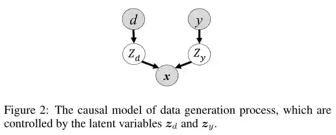 针对第一个问题,作者从数据生成过程背后的因果机制入手,如下图所示,给定由两个独立的潜在变量生成的 x,其中域潜在变量 对域信息编码,语义潜在变量 对语义信息编码,并且假设两者相互独立。作者还考虑到域信息在不同域之间可能存在很大差异,因此推断语义潜在变量在提取域不变表示中起着重要作用。