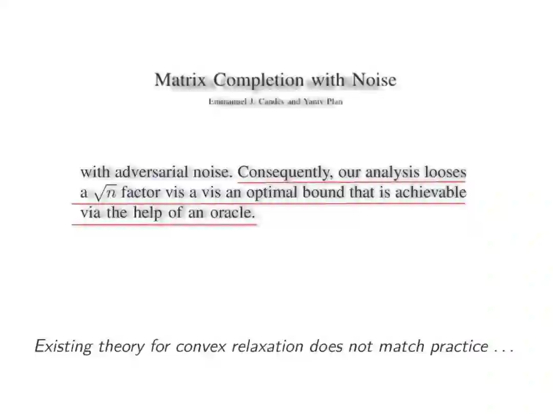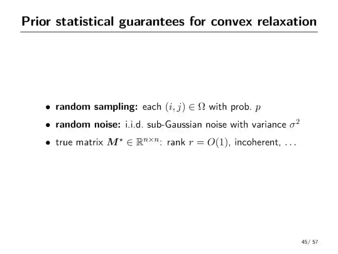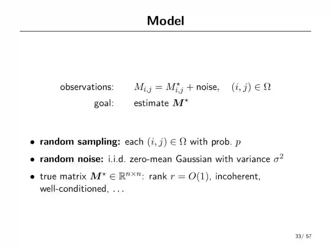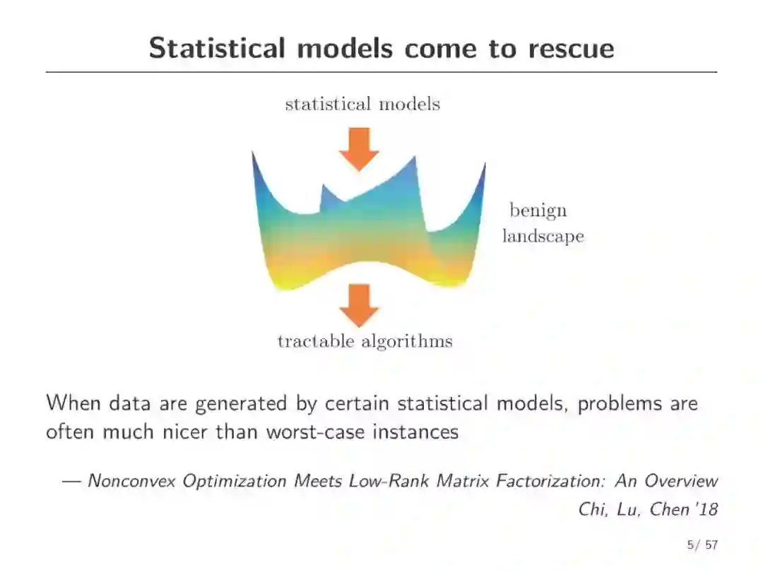 非凸优化是机器学习中的基础问题,迭代优化方法缺乏理论支撑。普林斯顿大学助理教授Yuxin Chen一直从事非凸优化方面的研究,这份报告讲述了最近关于非凸统计估计的故事,它们强调了统计模型在实现有效的非凸优化中的重要作用。