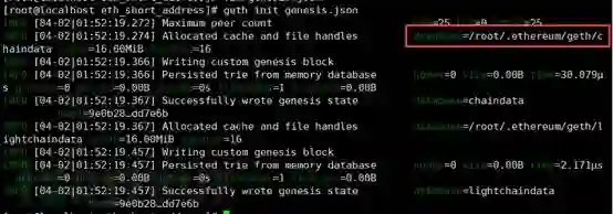初始化之后,就可以开启我们的私有链的,贴图中框内是私有链创建之后运行期间的文件保存路径,包括区块信息,信息等。如果第一次复现失败,再次进入控制台时发现无法挖矿,或者挖不到矿,可以考虑简单暴力的办法,把这些文件删掉,重新初始化配置文件。