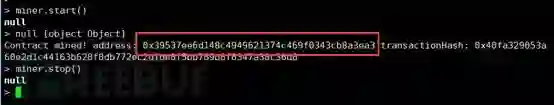 挖矿,打包交易,显示合约地址,停止挖矿一气呵成: