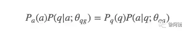 P(q|a) 即 QG 模型,和 P(a|q) 即 QA 模型可以通过联合概率联系起来,于是这里把 QA 和 QG 当作对偶任务,Seq2Seq 实现 QG,RNN 实现 QA,通过一个正则项把两个任务联系起来,联合训练一起学习 QA 和 QG 的参数,损失函数服从下面的条件: