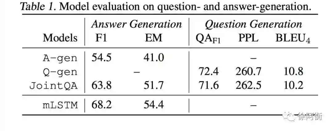 一个显著优势是,和上一篇 paper 相同,这里不需要预训练 QA,可以直接用 QG 辅助 QA 的实现同时给模型提供QG 的能力。