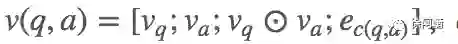 QA 模型 分别用 BiGRU 对 q 和 a 进行编码,拼接 last hidden state 作为向量得到 v_q 和 v_a,question-answer pair 的表达由四个向量拼接构成, c(q,a) 表示 q,a 的共现词,对应的词向量表达通过引入额外的 embedding 矩阵