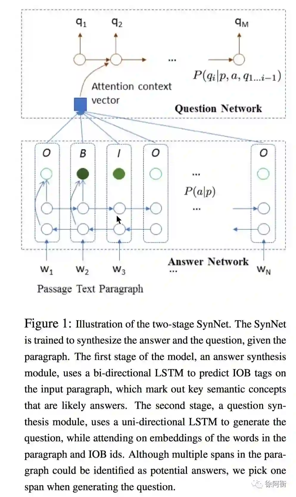 SynNet 把 QA 对(question-answer pair)的生成过程 P(q,a|p) 分解为条件概率 P(a|p) P(q|p,a) ,也就是下面两个步骤:
