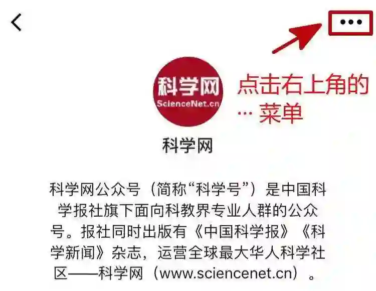 点击“科学网”进入公号页面→点击右上角的 ··· 菜单 →选择“设为星标”,搞定!