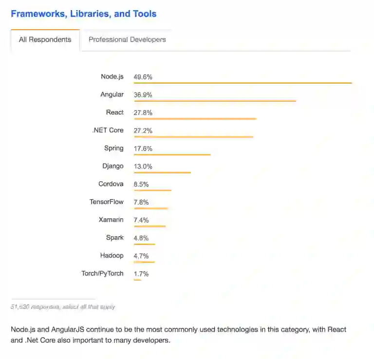 .NET Core 1.0自发布两年以来,得到了开发者群体相当高地认可。 下图来自Stack overflow survey 2018的统计: