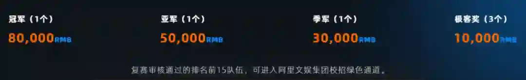 复赛审核通过的排名前 15 队伍,可进入阿里文娱集团校招绿色通道。