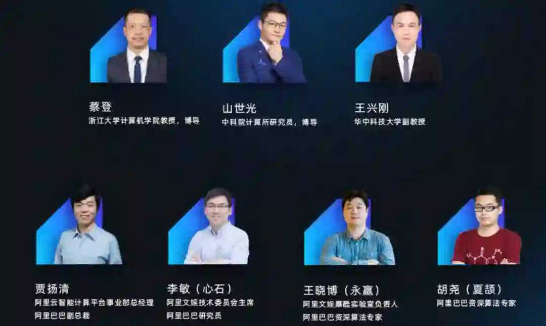 为体现比赛的专业性,此次大赛邀请到多位权威评审,包括浙江大学计算机学院教授蔡登、中科院计算所研究员山世光、华中科技大学副教授王兴刚、阿里巴巴副总裁及阿里云智能计算平台事业部总经理贾扬清、阿里文娱技术委员会主席李敏、阿里文娱摩酷实验室负责人王晓博、阿里巴巴资深算法专家胡尧。
