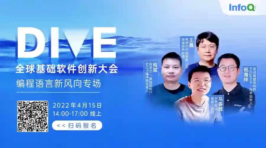 4 月 15、16 日,DIVE 全球基础软件创新大会(线上)来啦!本次大会将围绕操作系统、中间件、编译语言、数据库、微服务等不同领域做深入探讨,也将聚焦人才建设、投资和创业等问题进行洞察和分析。