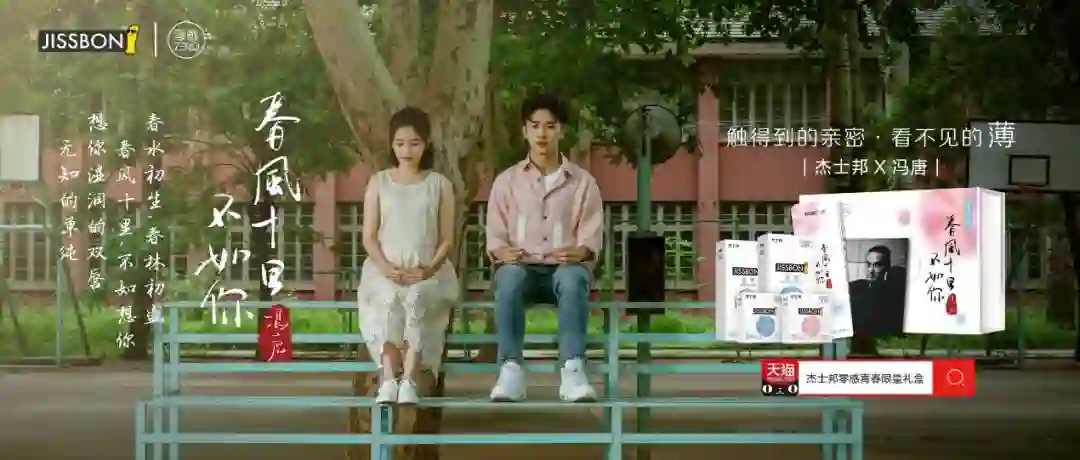 在去年,杰士邦就搭上了热门IP《十里春风,不如你》跨界合作,电视剧背靠文艺老司机冯唐,又是针对校园爱情故事,自然一开始就显得十分文艺和小清新。
