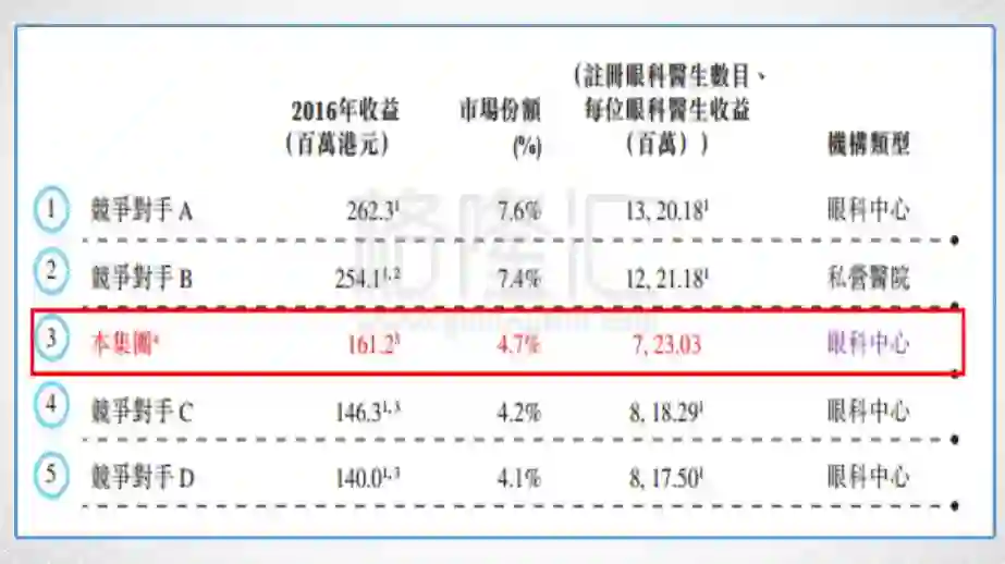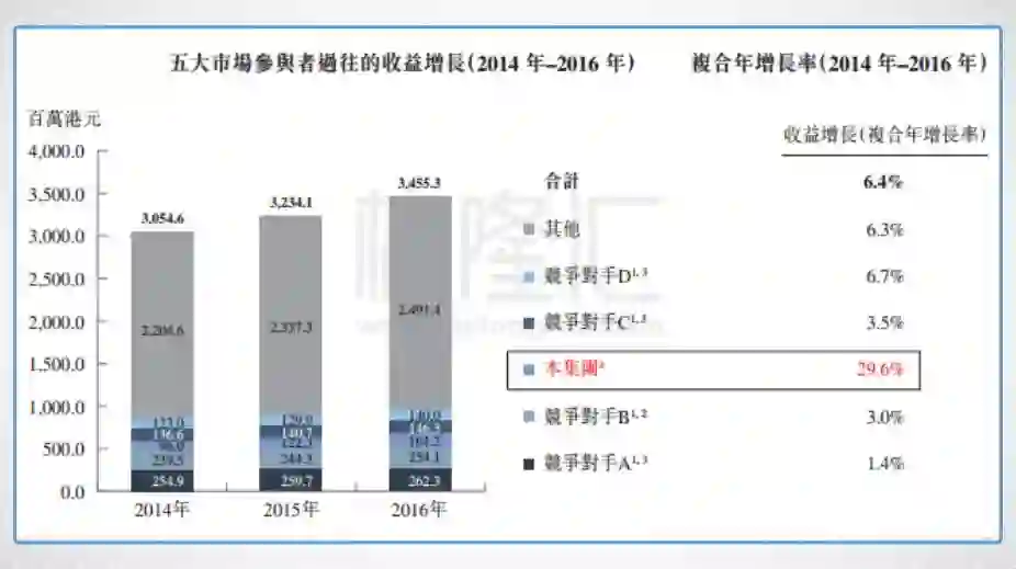 2014~2016年间,香港五大私营眼科服务提供商中,公司业务的收益增长率最高,复合年增长率29.6%。
