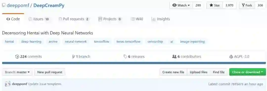 软件被上传分享后,在一周内被下载了 10000 多次。目前该项目在 GitHub 上已经获得3965 个Star,306 个Fork(项目地址:https://github.com/deeppomf/DeepCreamPy)