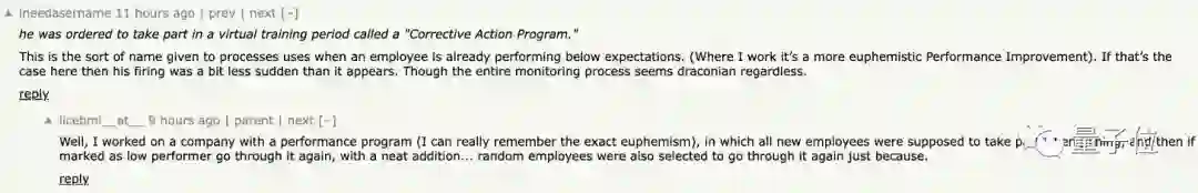 但也有网友指出,这名员工被要求参加的“Corrective Action Program”(更正行动计划)是专门给低绩效员工准备的,也就是说他平时的工作能力已经低于预期了。