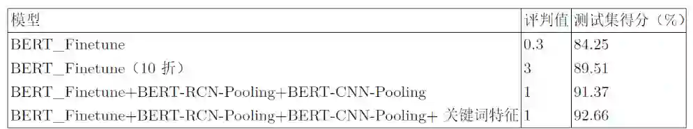 除了此模型外,该方案还使用了BERT-Finetune、BERT-RCN-Pooling模型。