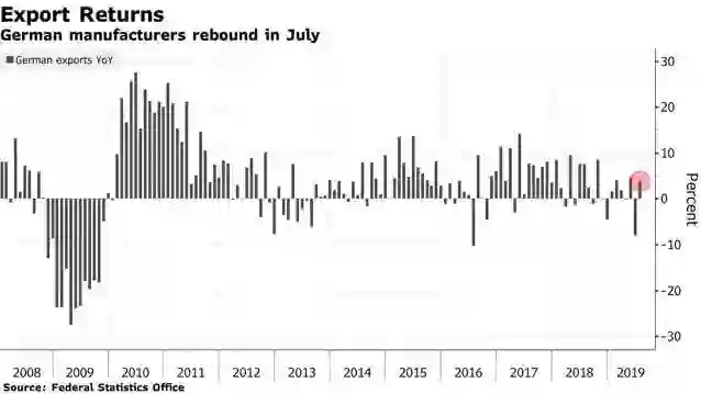 在美中贸易冲突的间接影响对经济造成严重冲击、商业信心处于六年多来最弱水平、7月工业产值意外下跌的乌云中,这多多少少算是给欧洲最大经济体带来了一些意料之外的慰藉。