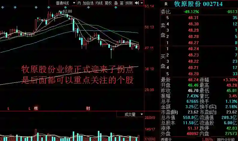 而我们此前提到的两个猪肉个股也获得了非常高的涨幅。其中一个是猪肉届的大佬、创业板权重股——温氏股份。另外一个则是抗风险能力非常强的牧原股份。