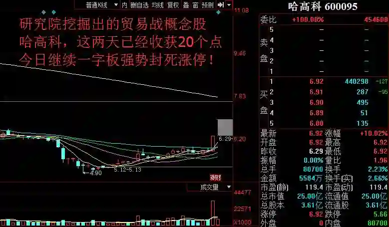 因此,我们研究院在上周挖掘到的哈高科这两天就已经收获了20个点!