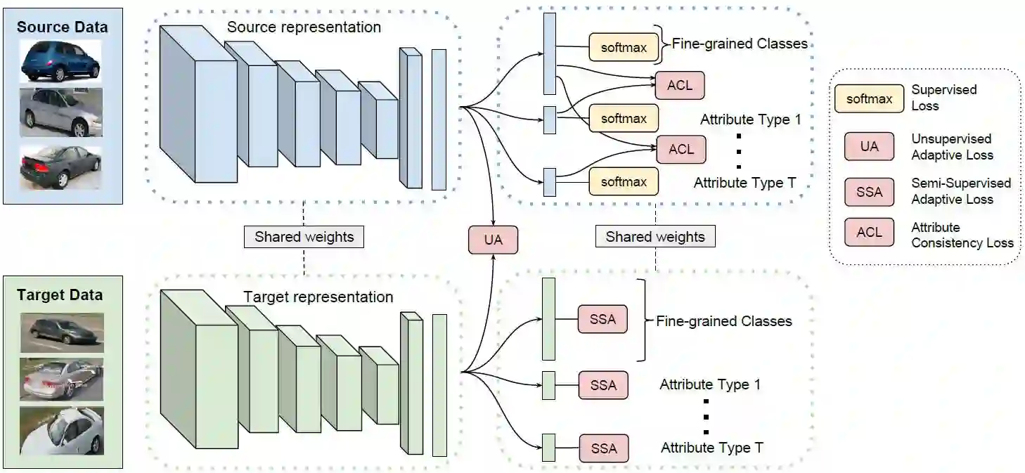 新研究主要着重于两点:首先,提出了一种新的多任务适应方法,它可以从已知的跨类别关系中受益。斯坦福提出的模型包括一个多任务适应目标,同时在属性和类别级别上学习和调整识别。研究人员证明了模型制定的目标有效地规范了源训练,从而改进了源模型到目标域的泛化。对于半监督的适应性任务(即当类别标签只适用于目标域的子集时),我们可以使用所有属性通常都具有标签的事实。例如,虽然面对的细分属性:1998 款本田雅阁轿车在训练集中是不存在的,但数据集中很可能会存在其他本田轿车。这样的话,我们就可以在类和属性级别中使用不同的适应技术。