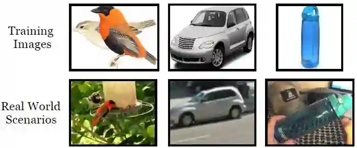 幸运的是,我们在很多有需求的领域里都能找到足够的有标签数据。例如,来自实地考察指南中的图片可以为我们的模型在野外识别不同种类的鸟提供训练数据。同样的,在电商网站里有标签的汽车图片也可以用于训练出在非结构环境下区分不同种类汽车的模型。然而,这些来源中的图像或许和现实世界中遇到的不同,这会导致模型表现显著降低。