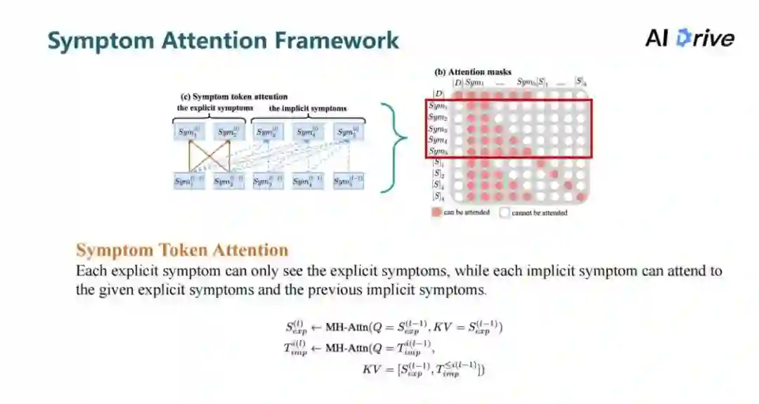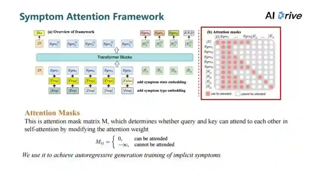 对此,让显性症状能够互相看到所有显性症状,而让隐性症状能看到自己以及前面的所有隐性症状和显性症状,从而可以实现自回归的隐性症状序列生成。