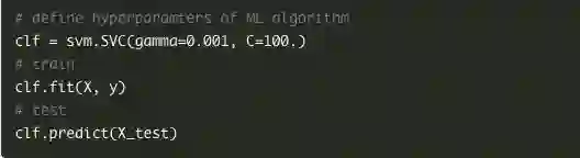 每个库都有自己的“实施细节”,即按照其编码模式编写的一种方法。例如,在执行scikit-learn时,首先创建所需算法的对象,然后在训练集上构建一个模型,并对测试集进行预测。例如: