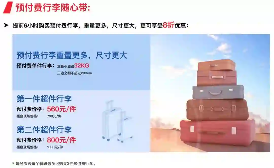 第一,行李额可以避免国内转机,带来的与国际航班的行李额不统一。