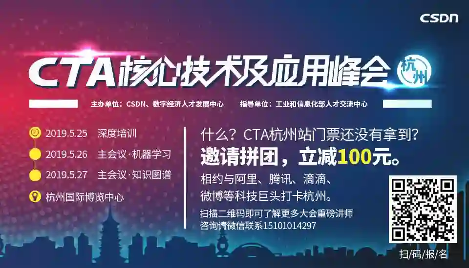 5月25-27日,由中国IT社区CSDN与数字经济人才发展中心联合主办的第一届CTA核心技术及应用峰会将在杭州国际博览中心隆重召开,峰会将围绕人工智能领域,邀请技术领航者,与开发者共同探讨机器学习和知识图谱的前沿研究及应用。