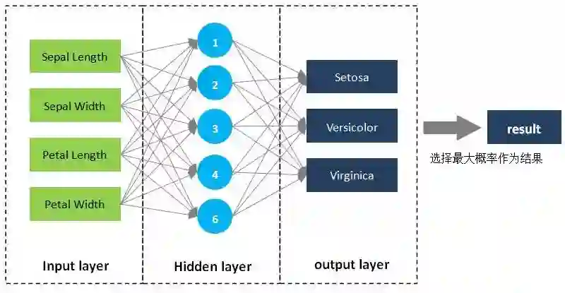 ④ 对输出层的3个概率,取最大概率作为最终结果。