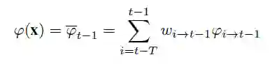 上面求得的特征肯定是不完全合理的,因为t-1帧的权重最大,而t-1可能是被遮挡的帧,这样的特征权重不应该是最大的。所以本文使用时间注意力机制来进行调整。如下: