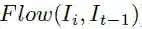 如示意图所示,分别将第t-1帧和第t-i帧(i=2,3,4,5,6)送到一个光流网络当中,提取5次光流特征。将所有这几帧图片如第t-1、t-2、...、t-6帧送到神经网络当中,分别提取提取深度特征