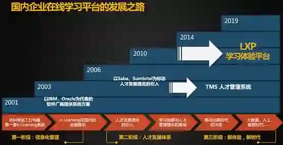 我们正在进入一个新的体验时代,企业在线学习领域正在发生翻天覆地的变化。回顾国内在线学习领域的发展,可分为以下三个阶段: