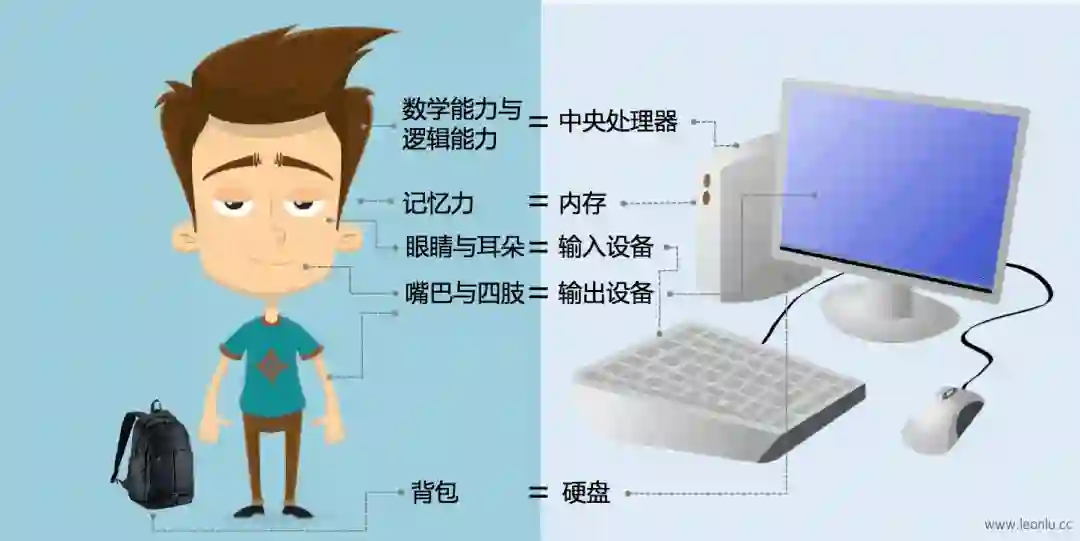 在进入到分布式计算技术这个概念之前,我们要先回顾一下传统计算技术,为了使计算机领域的相关概念能够生动形象深入浅出,我将计算机类比为人: