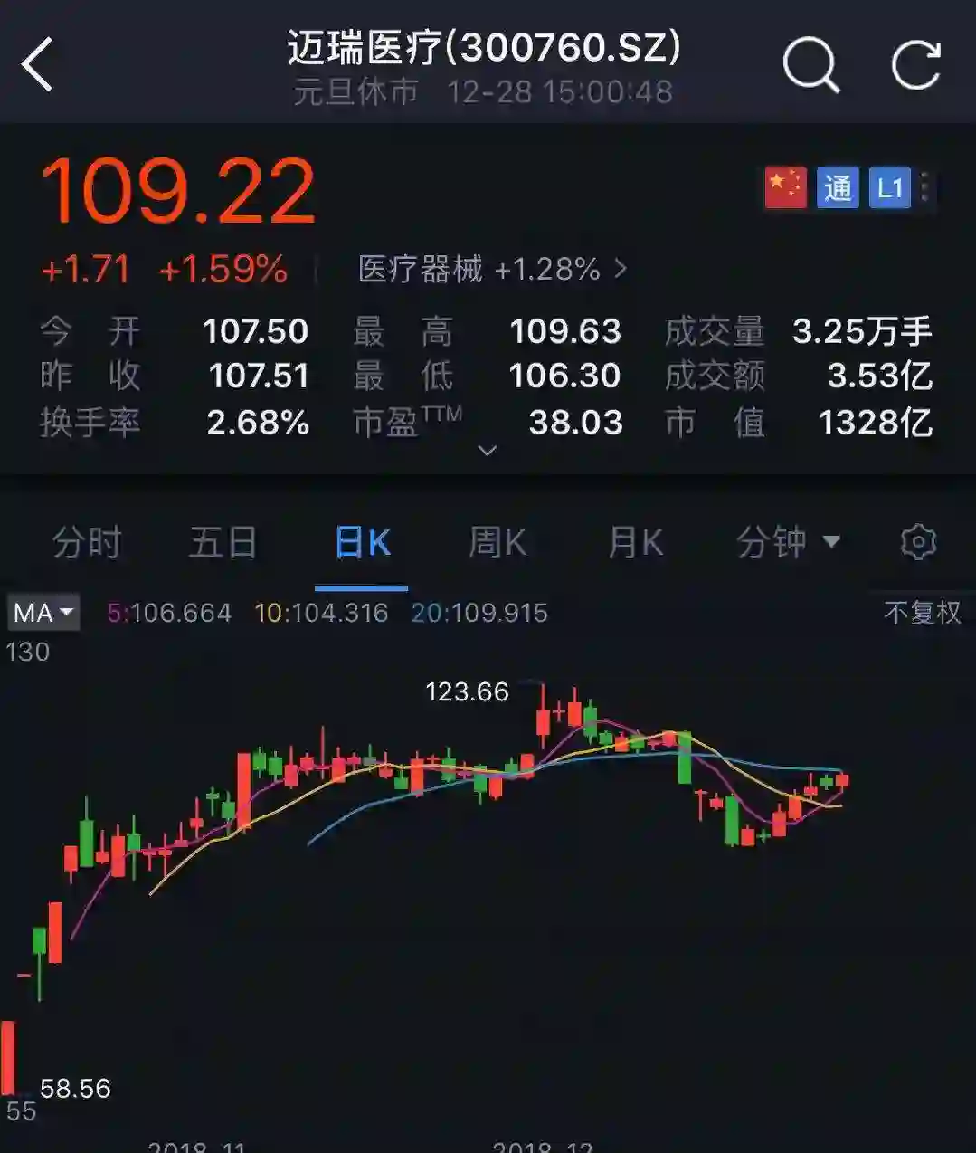 截至2018年12月29日,迈瑞医疗的总市值在近300家医药上市企业中排第二位,仅次于恒瑞医药。