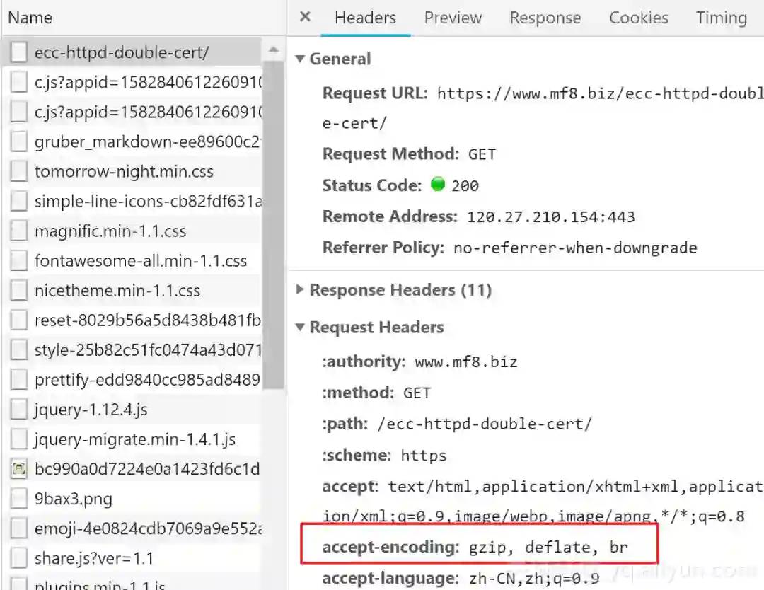 Brotli 的支持必须依赖 HTTPS,不过换句话说就是只有在 HTTPS 下才能实现 Brotli。