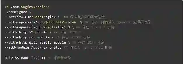 后续还有相关变量设置和设置服务、开启启动等步骤,篇幅限制就省略了,这篇文章有介绍在 Ubuntu 下的 Nginx 编译:https://www.mf8.biz/ubuntu-nginx/ 。