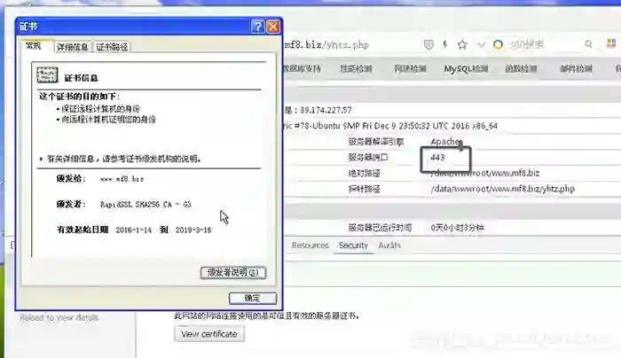 ECC 双证书配置了以后无非就是在旧浏览器设别上的验证了。这里用足够老的上古XP虚拟机来给大家证明一波。