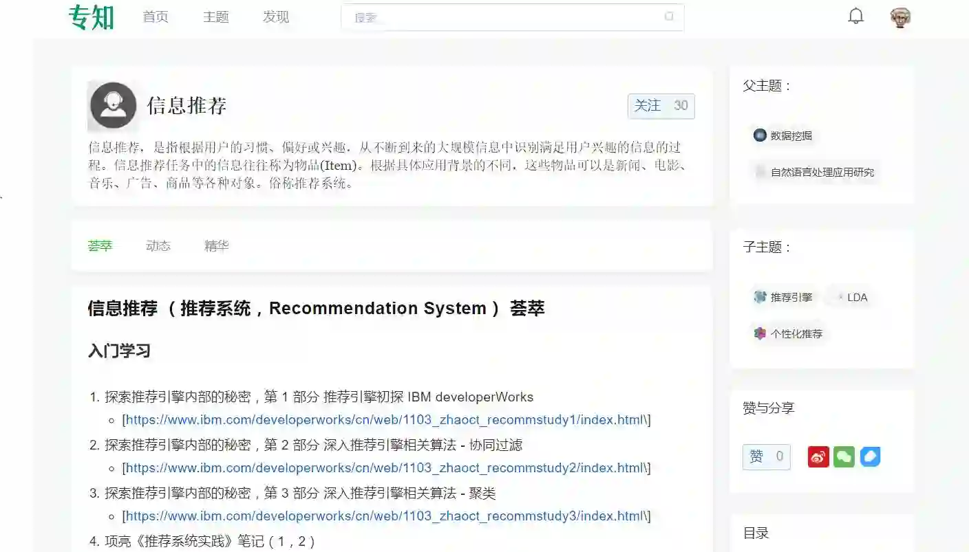 【导读】主题荟萃知识是专知的核心功能之一,为用户提供AI领域系统性的知识学习服务。主题荟萃为用户提供全网关于该主题的精华(Awesome)知识资料收录整理,使得AI从业者便捷学习和解决工作问题!在专知人工智能主题知识树基础上,主题荟萃由专业人工编辑和算法工具辅助协作完成,并保持动态更新!另外欢迎对此创作主题荟萃感兴趣的同学,请加入我们专知AI创作者计划,共创共赢! 今天专知为大家呈送第十篇专知主题荟萃-推荐系统知识资料大全集荟萃 (入门/进阶/论文/综述/视频/专家等),请大家查看!专知访问www.zhuanzhi.ai, 或关注微信公众号后台回复" 专知"进入专知,搜索主题“推荐系统”查看。此外,我们也提供该文网页桌面手机端(www.zhuanzhi.ai)完整访问,可直接点击访问收录链接地址,请文章末尾查看!此为初始版本,请大家指正补充,欢迎在后台留言!欢迎大家分享转发~