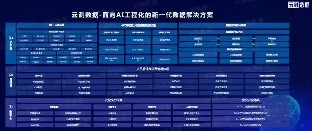 方案不仅包括标注数据、管理数据所需的平台工具,还涉及管理体系以及数据安全,总共三个方面。