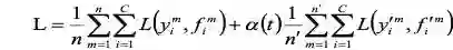 为了平衡有标签数据和无标签数据的信号强度,如上所示,算法在目标函数中引入了时变参数 α(t),其数学形式如下: